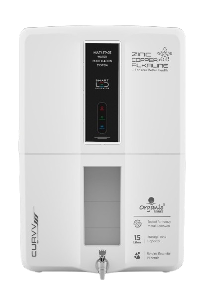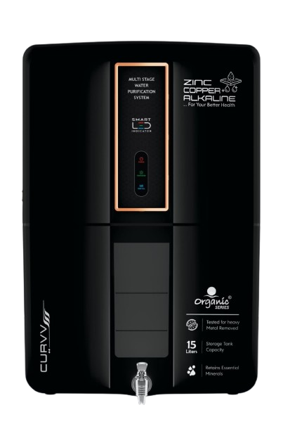 CURVV – Smart LED display with RO+UV, TDS control, alkaline boost, and auto-flush for pure and healthy water.